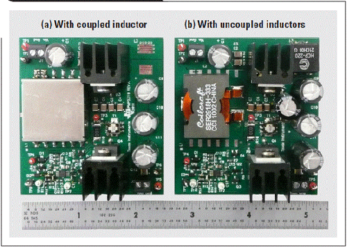“表 1”所示規範為設計比較的基礎。第一個設計使用一個耦合電感,而第二個則使用兩個非耦合電感。