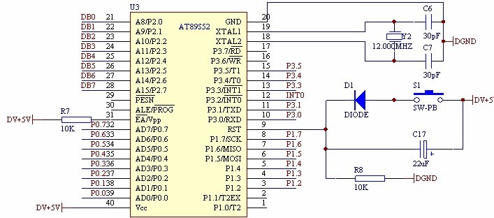 本設計使用的複位電路是由22μF 的電容,1 kΩ的電阻及IN4148 erjiguanzucheng。zaimanzudanpianjikekaofuweideqiantixia,gaifuweidianludeyoudianzaiyujiangdifuweiyinjiaodeduidizukang,keyixianzhezengqiangdanpianjifuweidianludekangganraonengli。
