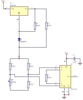 本文采用惠斯通電橋濾出微壓力傳感器輸出的模擬變量,然後用INA118放大器將此信號放大,用7715A/D 進行模數轉換,將轉換完成的數字量經單片機處理,最後由LCD 將其顯示,采用LM334 做的精密5 V 恒流源為電橋電路供電,完成了微壓力傳感器接口電路設計,既能保證檢測的實時性,也能提高測量精度。