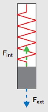 例如,圖1顯示了安裝於頂部位置的一個傳感器,與此同時底部正受到一個外力的拉拽,即Fext.在使用加速計的情況下,固定端(頂部)會粘附在要測量加速度的物體上,同時外力為粘附於另一端(底部)的質量的慣性,而這一端不斷想要保持靜止。就固定於頂端的參考坐標係而言(假設傳感器充當的是一個彈簧,其具有很高的彈簧係數 K),偏斜x會形成一種反作用力: