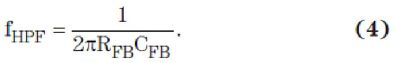 由於放大器的信號輸入為虛擬接地,因此輸入電流形成了一種輸出電壓擺動;並且高頻增益由CFB的值設定(RFB 影響減小,在"帶寬"部分後麵再進行敘述)。請注意,電容越小,增益越大。增益的近似值為:
