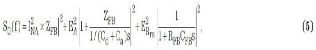 最後,我們需要最大化信噪比(SNR)。在進行仿真以前進行簡單的理論噪聲分析會有所幫助。圖4顯示了電荷放大器的主噪聲源。輸出噪聲譜密度可以表示為: