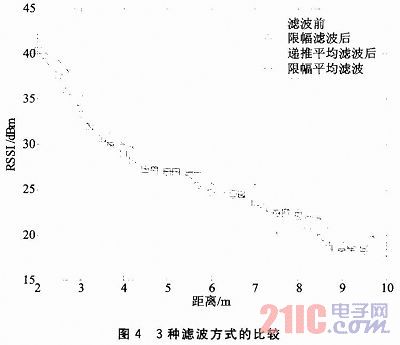 紅外線、GPS和超聲測距都需要額外的硬件,增加了節點的硬件成本和尺寸。GPS和紅外線測距誤差較大,而利用超聲方法測距很精確,測距誤差隻有10 cm,但是受氣溫、濕度等的影響較大,不適合在室外使用。基於RSSIdedingweiwuxuewaiyingjian,liyongduijieshouwuxianxinhaodeqiangdupanduan,tuidaoshoufajiedianjiandejuli,jisuanjieshouwuxianxinhaoqiangdushishangyongwuxianshoufaxinpianjubeidegongneng。jiyuRSSI的測距提供了最廉價的定位方法,而且節點沒有添加任何部件。基於超聲的測距雖然定位精度較高,但是需要添加硬件、增加節點成本和尺寸。所以,基於RSSI的測距是無線傳感器網絡定位較常采用的方法。首先對RSSI進行預處理,再通過預測模型預測距離的值,不但提高了基於RSSI的測距精度,而且實現了低成本的測距。