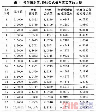 為wei了le驗yan證zheng測ce試shi結jie果guo的de可ke靠kao性xing,根gen據ju網wang絡luo訓xun練lian的de結jie果guo,把ba測ce試shi結jie果guo與yu真zhen實shi值zhi進jin行xing對dui比bi。為wei了le突tu出chu該gai方fang法fa的de優you越yue性xing,與yu經jing驗yan公gong式shi計ji算suan出chu來lai的de距ju離li值zhi進jin行xing比bi較jiao。表biao1為模型預測值、經驗公式值與真實值的比較。