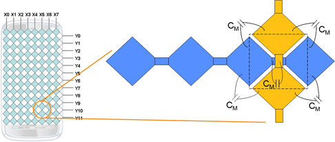 基本上,感測互容的原理(圖1)和感測自容完全不同。感測自容通常是量測含有感測器的電阻-電容(RC)電路之時間常數;感測互容的程序則包括量測X軸與Y軸感測器之間的互動。係統會感測經過每個X軸與Y軸的訊號,借此偵測感測器之間的耦合值(圖2)。耐人尋味的是,手指的觸碰動作會降低互容耦合值,但手指觸碰動作卻會增加自容的值。