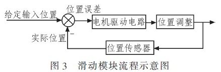 如圖3滑動模塊流程示意圖所示,本係統方案設計在傳輸係統和SMT生產設備的連接處,增設一個滑動裝置,主要由滑動板、滾(gun)珠(zhu)和(he)位(wei)置(zhi)傳(chuan)感(gan)器(qi)組(zu)成(cheng),形(xing)成(cheng)了(le)一(yi)個(ge)閉(bi)環(huan)控(kong)製(zhi),起(qi)到(dao)平(ping)衡(heng)作(zuo)用(yong)。在(zai)生(sheng)產(chan)過(guo)程(cheng)中(zhong),由(you)模(mo)塊(kuai)裝(zhuang)置(zhi)上(shang)的(de)位(wei)置(zhi)傳(chuan)感(gan)器(qi)實(shi)時(shi)將(jiang)實(shi)際(ji)位(wei)置(zhi)信(xin)號(hao)反(fan)饋(kui)給(gei)係(xi)統(tong),與(yu)給(gei)定(ding)輸(shu)入(ru)位(wei)置(zhi)信(xin)號(hao)相(xiang)比(bi)較(jiao)產(chan)生(sheng)一(yi)個(ge)位(wei)置(zhi)誤(wu)差(cha)信(xin)號(hao),然(ran)後(hou)由(you)這(zhe)個(ge)誤(wu)差(cha)信(xin)號(hao)驅(qu)動(dong)電(dian)機(ji)運(yun)轉(zhuan)進(jin)行(xing)位(wei)置(zhi)調(tiao)整(zheng)。當(dang)設(she)備(bei)平(ping)衡(heng)時(shi),位(wei)置(zhi)誤(wu)差(cha)為(wei)零(ling),不(bu)進(jin)行(xing)位(wei)置(zhi)調(tiao)整(zheng);當傳輸機有偏斜時,位置誤差不為零,由它驅動電機運轉,使設備進行一定的位置調整。通過這套裝置,消除由振動產生位置偏移、利於整個生產線的生產、增強各設備之間銜接。