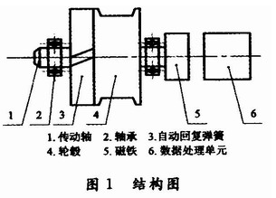 (2)磁ci敏min角jiao度du感gan應ying器qi與yu磁ci鐵tie安an裝zhuang在zai同tong一yi中zhong心xin軸zhou,用yong來lai感gan應ying磁ci鐵tie角jiao度du的de變bian化hua,選xuan用yong一yi種zhong微wei處chu理li器qi,該gai處chu理li器qi讀du取qu磁ci敏min角jiao度du信xin息xi,並bing通tong過guo建jian立li數shu學xue模mo型xing,將jiang磁ci敏min角jiao度du運yun算suan為wei拉la線xian的de位wei移yi。