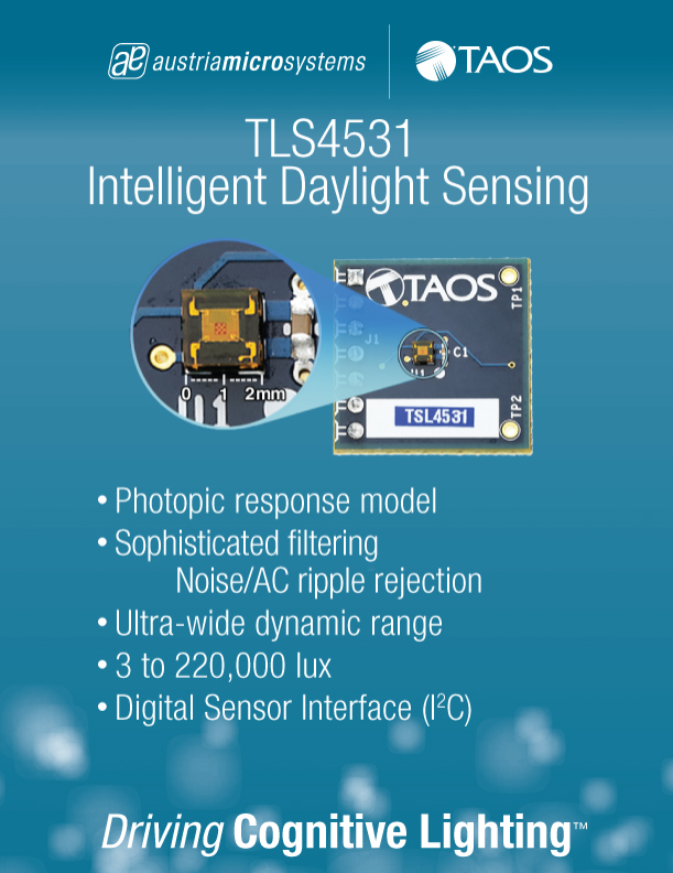 新的傳感器係列由2011年被奧地利微電子收購的全球領先智能照明傳感器提供商TAOS所研發,可提供從3勒克斯至220,000勒克斯的動態範圍,可防止直射陽光下的傳感器輸出飽和,並通過運用適光反應模型使傳感器的輸出與人眼的感知一致。
