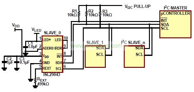ISL29043工作電壓範圍從2.25V到3.63V,可工作於-40°C至85°C的環境溫度範圍。