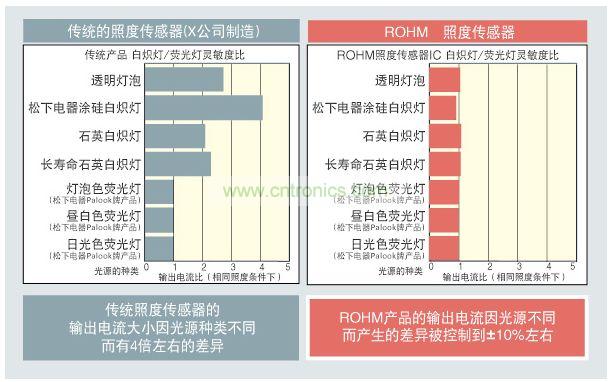 在zai各ge種zhong不bu同tong環huan境jing下xia使shi用yong的de手shou機ji和he便bian攜xie式shi裝zhuang置zhi,其qi功gong耗hao較jiao大da的de液ye晶jing顯xian示shi屏ping一yi般ban是shi使shi用yong照zhao度du傳chuan感gan器qi並bing且qie根gen據ju環huan境jing光guang的de強qiang弱ruo進jin行xing背bei光guang調tiao光guang的de。另ling外wai,在zai通tong話hua過guo程cheng中zhong為wei了le使shi臉lian部bu和he手shou指zhi觸chu碰peng到dao按an鍵jian不bu會hui引yin起qi誤wu動dong作zuo,傳chuan感gan器qi應ying在zai臉lian部bu和he手shou指zhi靠kao近jin按an鍵jian時shi就jiu能neng覺jiao察cha,以yi便bian采cai取qu措cuo施shi使shi此ci時shi的de按an鍵jian操cao作zuo不bu起qi作zuo用yong。而er且qie,如ru果guo通tong話hua時shi背bei光guang也ye閉bi關guan的de話hua,就jiu可ke以yi進jin一yi步bu降jiang低di消xiao耗hao功gong率lv。ROHM能夠用1片芯片實現調光和防止誤動作。