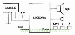 SPCE061A同樣提供了通用異步串行接口UART,所以可以直接利用其通用異步串行接口進行聯網,實現測溫人員與被測對象的隔離,即遠距離和多點測溫。