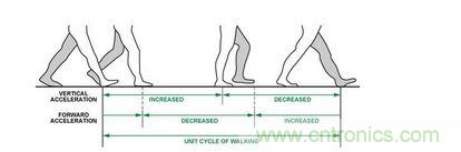 用yong戶hu在zai水shui平ping步bu行xing運yun動dong中zhong,垂chui直zhi和he前qian進jin兩liang個ge加jia速su度du會hui呈cheng現xian周zhou期qi性xing變bian化hua,如ru圖tu所suo示shi。在zai步bu行xing收shou腳jiao的de動dong作zuo中zhong,由you於yu重zhong心xin向xiang上shang單dan隻zhi腳jiao觸chu地di,垂chui直zhi方fang向xiang加jia速su度du是shi呈cheng正zheng向xiang增zeng加jia的de趨qu勢shi,之zhi後hou繼ji續xu向xiang前qian,重zhong心xin下xia移yi兩liang腳jiao觸chu底di,加jia速su度du相xiang反fan。水shui平ping加jia速su度du在zai收shou腳jiao時shi減jian小xiao,在zai邁mai步bu時shi增zeng加jia。