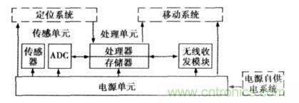 節點是無線傳感器網絡的基本功能單元,具體應用不同,節點的設計也不盡相同。傳感器節點的基本組成模塊有:傳感單元、處理單元、通信單元以及電源部分,節點的結構見圖2。此外,根據具體應用要求可以添加功能單元,如:定位係統、移動係統以及電源自供電係統等。