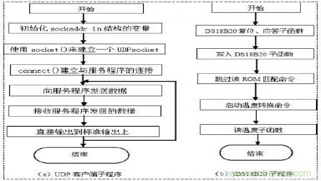 根據DS18B20的通訊協議,主機(單片機)控製DS18B20完成溫度轉換必須經過三個步驟:每一次讀寫之前都要對DS18B20進行複位操作,複 位成功後發送一條ROM指令,最後發送RAM指令,這樣才能對DS18B20進行預定的操作。該流程框圖如圖2(b)所示。