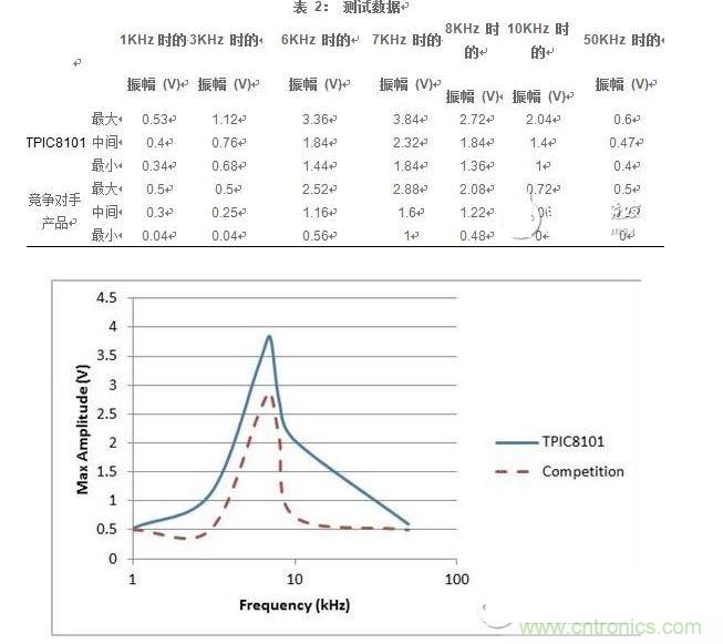 圖 2:測試結果–與競爭產品的振幅比較(相對於頻率)
