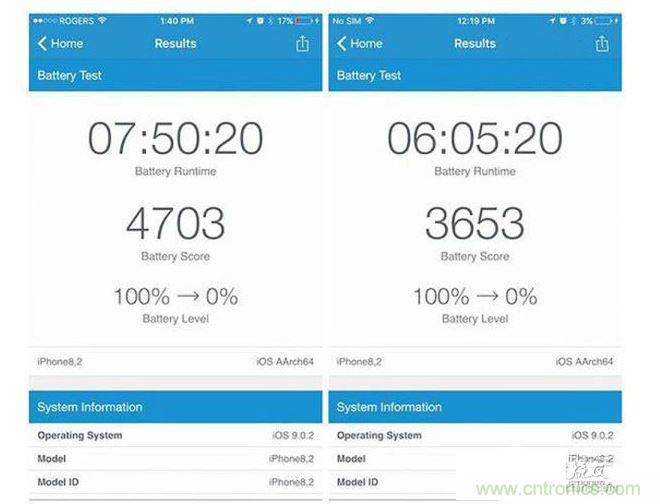 【導讀】最近,多家外媒對兩個版本的A9芯片進行了續航方麵的測試,發現台積電16nm芯片要比三星14nm芯片續航更長一些,甚至有Reddit用戶專門使用Geekbench 3進行了測試,結果發現台積電A9芯片的續航要比三星代工的A9芯片多出近兩個小時。