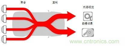 前置機器視覺攝像頭更是需要多個副本,但它將很快適用於自主車輛的附加攝像頭、雷達和光線檢測/測距(LIDAR)傳感器。數據記錄是一個當今非常常見的複製應用(圖1)。zaijiqishijiaoyingyongzhong,tongchangjilumouxiexingchezhuangkuangdeyuanshichuanganqishuju,yiyongyuweilaifenxi。zhezhongqingkuangxia,yongyoujuheyuanshichuanganqishujudedierfuben,bingjiangqiyongyushujujilu,shidayoubiyide;而另一個副本則用於機器視覺處理。