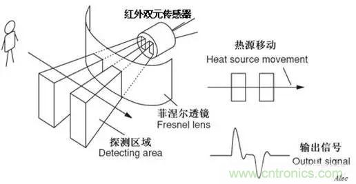被(bei)動(dong)紅(hong)外(wai)傳(chuan)感(gan)器(qi)包(bao)含(han)兩(liang)個(ge)互(hu)相(xiang)串(chuan)聯(lian)或(huo)並(bing)聯(lian)的(de)熱(re)釋(shi)電(dian)元(yuan)。而(er)且(qie)製(zhi)成(cheng)的(de)兩(liang)個(ge)電(dian)極(ji)化(hua)方(fang)向(xiang)正(zheng)好(hao)相(xiang)反(fan),環(huan)境(jing)背(bei)景(jing)輻(fu)射(she)對(dui)兩(liang)個(ge)熱(re)釋(shi)電(dian)元(yuan)幾(ji)乎(hu)具(ju)有(you)相(xiang)同(tong)的(de)作(zuo)用(yong),使(shi)其(qi)產(chan)生(sheng)釋(shi)電(dian)效(xiao)應(ying)相(xiang)互(hu)抵(di)消(xiao),於(yu)是(shi)探(tan)測(ce)器(qi)無(wu)信(xin)號(hao)輸(shu)出(chu)。