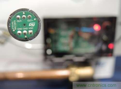 意法半導體(STMicroelectronics;ST)展示了一種能夠拾取20Hz至80KHz訊號的MEMS麥克風,可深層監聽超音波頻譜,以檢測建築物中的管線泄漏等故障情況。如同在Sensor Expo展場的其他傳感器一樣,這款低於1美元的組件目的在於將數據串流傳輸到執行嵌入式分析的微控製器(MCU)。