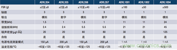 ADI公司最近推出了一係列新型低噪聲、低功耗、3軸加速度計:提供模擬輸出的ADXL354;提供數字輸出和±2 g、±4 g、±8 g可編程範圍的ADXL355;提供模擬輸出的ADXL356;提供數字輸出和±10 g、±20 g、±40 g可編程範圍的ADXL357。