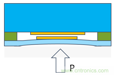 圖2:陶瓷電容壓力傳感器承壓後截麵圖