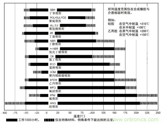 圖3:典型O型圈材料的使用溫度範圍(source:Parker)