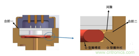 通過控製上圖中台階一與O型圈槽底的高度差,對O型圈壓縮量進行控製。