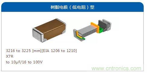 希望降低基板彎曲、掉落衝擊以及熱衝擊等機械壓力導致的風險時,推薦使用在端子電極上嵌有具備柔性的樹脂層以及金屬框架的"冗長設計類型"結構。