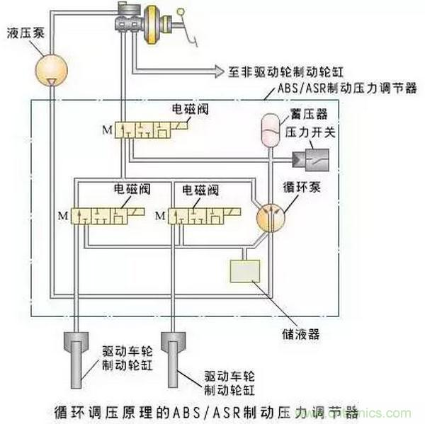 2)底盤電子控製係統包括防抱死控製係統(ABS)、防滑轉電子控製係統(ASR)、懸架電子控製係統、自動變速器電子控製係統、巡航控製係統等。