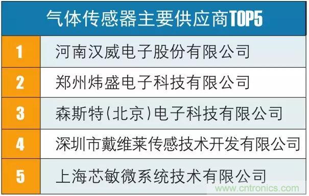 國內方麵,主要的氣體傳感器企業有煒盛科技、河南漢威、森斯特、深圳戴維萊和上海芯敏等。其中,煒盛科技是目前國內唯一能生產半導體類、催化燃燒類、電化學類和紅外光學類等四大類氣體傳感器的企業。為國內氣體傳感器絕對龍頭,占據60-70%銷售量。檢測氣體種類覆蓋絕大多數可燃氣體和多數毒性氣體,廣泛應用於工業、礦業、等領域。(記者:譚倫)
