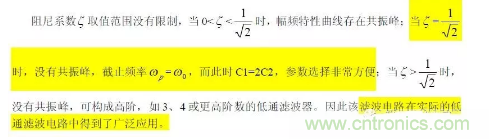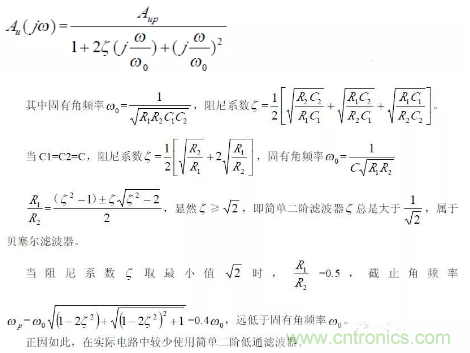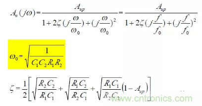 可見該低通濾波器特點是阻尼係數ζ 由電阻R1、R2,C1、C2 的比決定;而固有頻率ω0與R1、R2、C1、C2 具體數值有關,即ω0與ζ 獨立可調,互不影響。