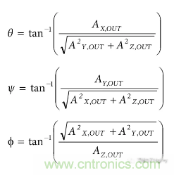 圖2:XYZ三軸與參考位置的夾角計算公式