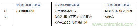該使用哪種加速度傳感器,應根據具體的應用要求而定,比如檢測傾斜角範圍、檢測對象在XYZ三軸運動上是否有限定、檢測精度要求等等。