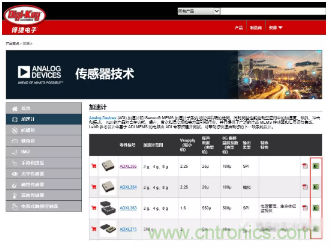 舉個例子, ADI三軸加速度傳感器ADXL355BEZ配套的評估板可以在Digi-Key的產品頁麵中配用欄中找到匹配的評估板EVAL-ADXL355Z。也可以通過ADI加速度傳感器選擇與開發板選擇頁麵中最後一欄中找到對應的開發板。