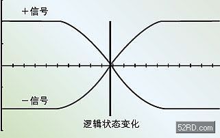 單端信號通常總是參照某種“參考”電平。這種“參考”電平可能是一個正值電壓也可能是地電壓、一個器件的閾值電壓、或者是其它什麼地方的另外一個信號。而另一方麵差分信號則總是參照該差分線對中的另一方。也就是說,如果一個信號線(+信號)上的電壓高於另一個信號線(-信號)上的電壓,那麼我們就可以得到一種邏輯狀態;而如果前者低於後者那麼我們就可以得到另外的一種邏輯狀態,參見圖1。