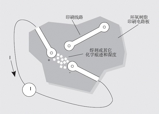 高濕度和離子汙染能夠大大降低絕緣電阻。在發生結露或水吸收的情況時,就會出現高濕度,而離子汙染則可能由人體的油脂、鹽分和焊劑等產生。